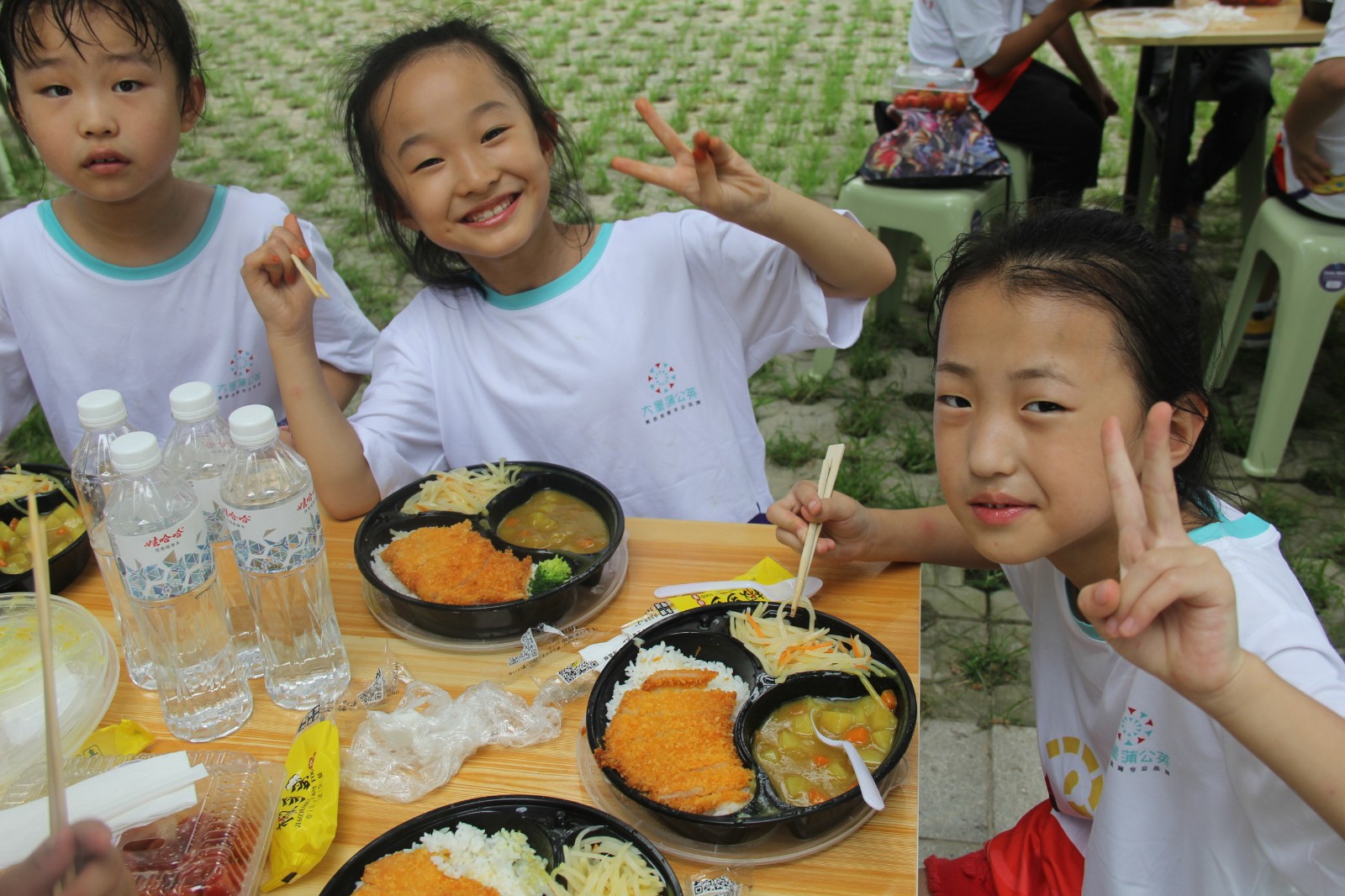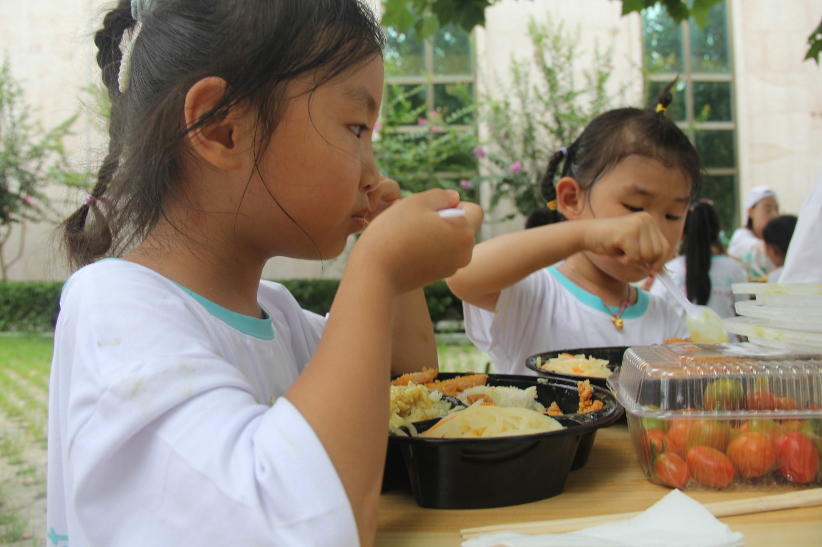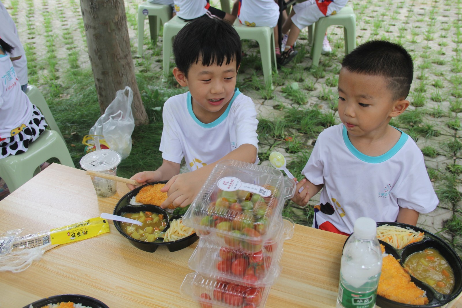 工作人員提前為每個老師和孩子準備了豐盛的午餐,在樹蔭之下分享著彼此辛苦采來的圣女果,享受著可口的飯菜,相信會給孩子們的心靈深處留下一塊的甜美的回憶。